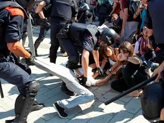Al grito de "¡Nadie nos representa!", los concentrados, que desde anoche rodeaban los accesos al Parque de la Ciutadella en Barcelona (donde está el Parlamento regional), expresaron su malestar con la clase política y plantaron cara a la policía, que tuvo que formar un "pasillo" para permitir la entrada de los parlamentarios