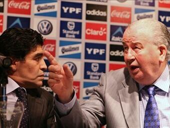 Diego Maradona presentó una denuncia penal contra el presidente de la Asociación del Fútbol Argentino, Julio Grondona, y antiguos directivos del River Plate por una presunta "administración fraudulenta" que hizo al club descender a la Segunda División, informaron fuentes judiciales. Grondona y el ex presidente del River Plate José María Aguilar, entre otros antiguos dirigentes riverplatenses, son supuestamente responsables de cometer "numerosos delitos" que "responden a una conducta de omisiones injustificadas, acordada o premeditada", afirmó Alejandro Sánchez, abogado de Maradona. "Los responsables de la conducción del River Plate y también de la entidad que rige el fútbol argentino, han sido ilícitos y por ende han perjudicado el patrimonio del club, agudizando la crisis y llevando al descenso de su categoría", aseguró Sánchez. "Ante esa situación resulta imprescindible la intervención de la Justicia", subrayó el abogado en declaraciones al canal C5N de la televisión local por cable. El representante de Maradona pidió al juez federal bonaerense Claudio Bonadío que cite a Grondona y Aguilar para que respondan a los cargos que les imputa el ex seleccionador de Argentina. Maradona ha protagonizado duras disputas con el presidente de la federación argentina y en los últimos días se había lamentado de la grave situación de River Plate, que afronta un déficit de unos 200 millones de pesos (cerca de 50 millones de dólares), según cálculos de la prensa deportiva. Aguilar presidió al River Plate entre 2001 y finales de 2009, cuando fue sucedido por el ex seleccionador argentino Daniel Passarella, quien en varias ocasiones denunció haber heredado una grave situación económica y dispuso una auditoría de la gestión de su antecesor cuyo resultado se desconoce. Aguilar es señalado como uno de los principales colaboradores de Grondona en la federación argentina y actualmente ocupa cargos en la FIFA y en el comité organizador de la Copa América, que comienza este viernes en Argentina. Passarella aseguró este domingo que lo sacarán "con los pies por delante" de la conducción del River, luego de que el club cayera a la Segunda División, por primera vez en sus 110 años de historia, al empatar a uno con el Belgrano de Córdoba. La caída de River Plate, el club que más campeonatos argentinos ha ganado (33), solo superado en popularidad por el Boca Juniors, su tradicional rival, desembocó en violentos disturbios en su estadio, que fue temporalmente clausurado mientras se instruye una causa por daños y lesiones