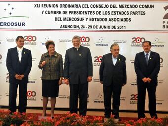El Vicepresidente Angelino Garzón intervino en representación delpPresidente Juan Manuel Santos, quien está en Colombia recibiendo a su homólogo recién electo del Perú, Ollanta Humala, en la XLI Reunión Ordinaria del Consejo del Mercado Común y Cumbre de Presidentes de los Estados Partes del Mercosur y Estados Asociados, que se lleva a cabo en Asunción, Paraguay