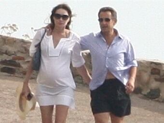 Los medios franceses publicaron hoy fotografías de la pareja paseando con ropa estival y bañándose juntos en el Mediterráneo en las que se puede apreciar el evidente embarazo de Bruni, que alumbrará en los próximos meses al primer hijo de ambos