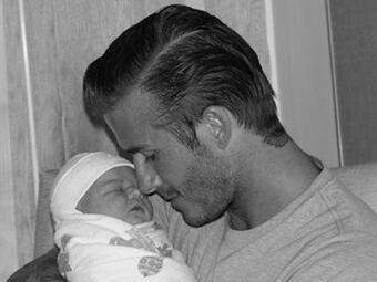 Victoria Beckham publicó hoy en Twitter la primera foto de su hija recién nacida, Harper Seven, en la que se ve al padre, el futbolista David Beckham, acunando al bebé en una instantánea en blanco y negro