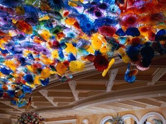 La revista asegura que el arte no está reservado para los cuadros de los museos, sino  que también está en el “lienzo de los techos”, como el del hotel Bellagio en Las Vegas, con dos mil flores de los colores del arco iris hechas por el escultor de vidrio Dale Chihuly
