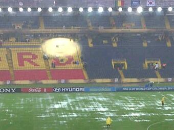 Inundaciones en la cancha de El Campín retrasan partido Malí - Corea
