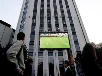 En varios de los más céntricos y concurridos parques y plazoletas de Bogotá, la empresa privada, los comerciantes y las alcaldías zonales han instalado gigantescos televisores para permitir que sus clientes sigan las incidencias del torneo que se disputa en ocho ciudades del país andino