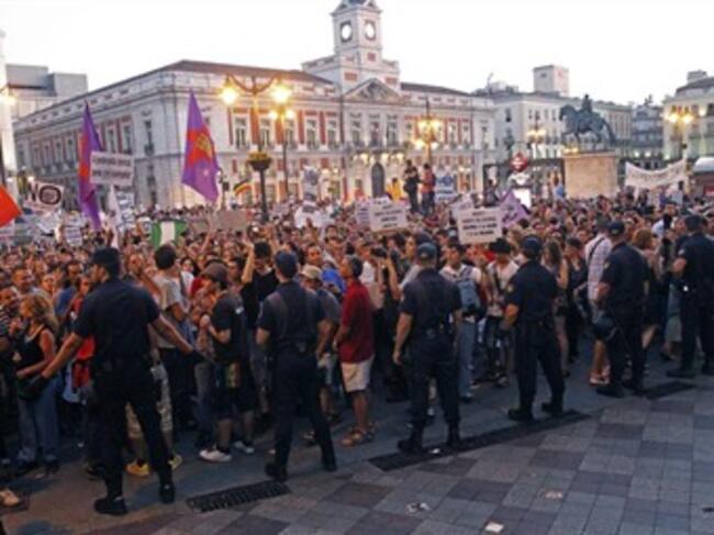 La plaza de la Puerta del Sol, que en los últimos meses se ha convertido en emblema del llamado movimiento 15-M, que pide cambios políticos y sociales, protagonizó esta noche los momentos de más tensión al encontrarse grupos de peregrinos y de jóvenes miembros del movimiento de los "indignados"