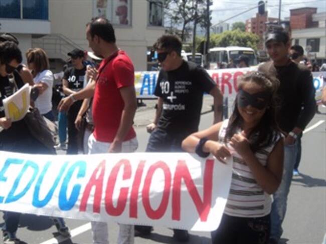 Portando pancartas con mensajes en contra la corrupción, vistiendo camisetas negras y cubriendo sus rostros con antifaces, los manifestantes recorrieron las calles en el desfile que comenzó frente a la sede administrativa del Sena en Sincelejo