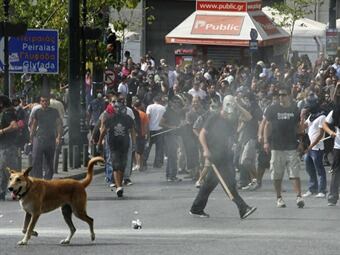 Lukanikos, el llamado perro anarquista, que se ha hecho presente desde el 2008 en cada uno de los disturbios en Atenas, volvió a ser protagonista hoy en la huelga general que paralizó Grecia por la crisis económica