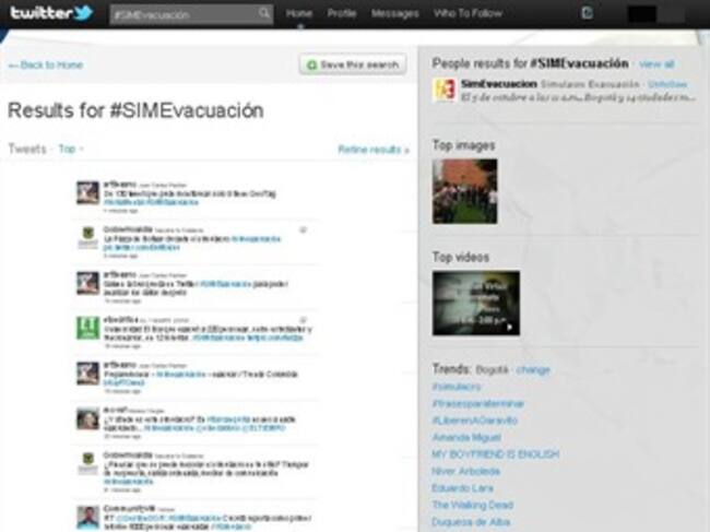Bajo los hashtag #simulacro y #SIMEvacuación, las personas registradas en redes sociales comentaron cómo se realizaba el simulacro de evacuación en sus hogares y sitios de trabajo, ratificando la utilidad de las plataformas virtuales como medios de comunicación en tiempo real.