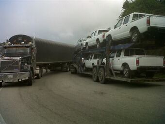 En este tiempo la tractomula estuvo detenida junto con otros cientos de camiones 13 horas por un derrumbe antes de iniciar el asenso al Alto de Letras.