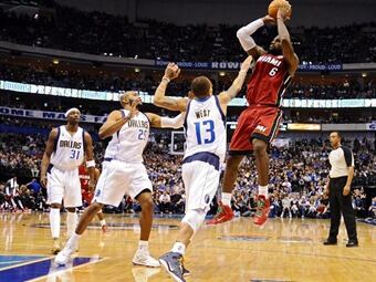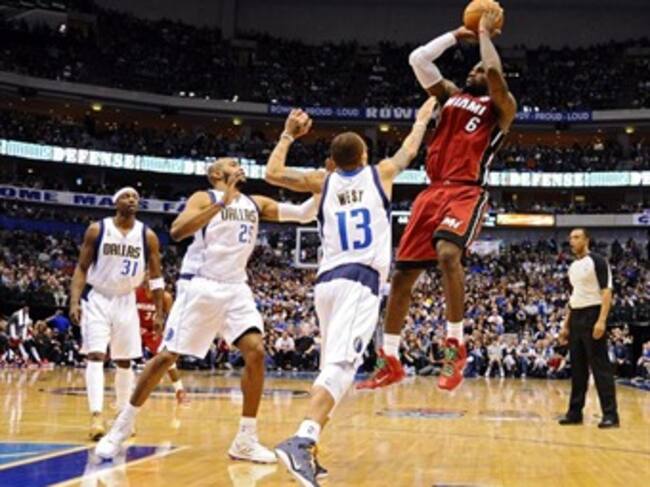 La larga espera del Heat de Miami, para vengarse de haber perdido el título de campeones de la NBA acabó con la victoria por 94-105 que lograron frente a los Mavericks de Dallas. LeBron James surgió con su mejor baloncesto individual y de equipo al conseguir un doble-doble de 37 puntos (11-19, 0-0, 15-19), 10 rebotes, seis asistencias, dos tapones y dos recuperaciones después de jugar 35 minutos. El ala-pívot reserva Udonis Haslem fue el mejor jugador del Heat bajo los aros al capturar 14 rebotes, anotar nueve puntos y poner un tapón. El gran trabajo de Haslem bajo los aros iba a ser otra de las claves del triunfo del Heat, que dominó a los Mavericks al conseguir 51 rebotes por 31 de los actuales campeones de liga. Una vez más, el escolta Jason Terry y el alero alemán Dirk Nowitzki fueron los mejores en el ataque de los Mavericks al conseguir 23 y 21 puntos, respectivamente, pero siempre sin valor de cara a que su equipo tuviese la oportunidad de conseguir la victoria. La exhibición y el dominio del Heat se dio desde el inicio del partido con una gran defensa y un juego de transición rápido que superó a los Mavericks, que se vieron sin orden, definición de equipo y mucho menos como el equipo campeón que ganó el pasado verano su primer título de liga. Sin tiempo para que sus tres incorporaciones importante, como son el alero Lamar Odom, el escolta Vince Carter y West, hayan encajado en su esquema de juego, los Mavericks tuvieron a Nowitzki como el líder encestador, a pesar que no mostró su mejor toque de muñeca. De los 13 puntos conseguidos en la primera parte, nueve los anotó desde la línea de personal, mientras que falló siete de nueve tiros de campo. Como equipo el Heat se iba al descanso con un 51 por ciento de acierto en los tiros de campo y el 80 (4-5) de triples, comparados al 29 y 38, respectivamente de los Mavericks. El cuarto periodo sólo iba a servir de puro trámite para que los Mavericks con una racha de 11-0 en los primeros minutos "maquillasen" un marcador final menos escandaloso, pero no pudieron evitar una derrota humillante en su primer partido de temporada. En cambio, el Heat logró todos los objetivos que se estableció para la jornada inaugural como fueron ganar, vengarse de la pérdida del anillo de campeones que sufrieron el pasado junio y demostrar que son mejor equipo que los Mavericks. Resultados partidos diciembre 25:Boston 104-106 Nueva YorkMiami 105-94 DallasChicago 88-87 LA LakersOrlando 89-97 Oklahoma CityLA Clippers 105-86 Golden State -Partidos diceimbre 26:Toronto Raptors -- Indiana Pacers Charlotte Bobcats -- Miami Heat Atlanta Hawks -- Washington Wizards Detroit Pistons -- Cleveland Cavaliers New Orleans Hornets -- Boston Celtics Memphis Grizzlies -- Oklahoma City Thunder San Antonio Spurs -- Los Ángeles Clippers Denver Nuggets -- Utah Jazz Phoenix Suns -- Philadelphia Sixers Golden State Warriors -- Nueva York Knicks