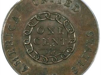 El centavo pertenece a la llamada "Chain Cent", la primera serie de monedas de una centésima parte de dólar en la que aparece grabado en el reverso un encadenamiento de anillos que representa, supuestamente, la solidaridad entre los estados de Estados Unidos