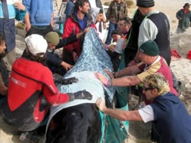 Las autoridades intentarán reflotar hoy a las 40 ballenas varadas para evitar que sus compañeras regresen a la orilla