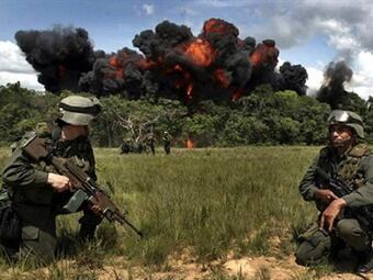 La operación empezó con dos bombardeos de la fuerza aérea del Ejpercito a dos campamentos del grupo subversivo en zona rural del departamento del Meta.