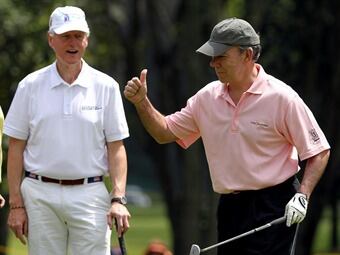 Sin embargo, contrario a lo que se pensaba, fue el expresidente Clinton el que no tuvo un buen comienzo tras un golpe que salió desviado, por lo que debió repetirlo