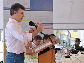 El presidente Juan Manuel Santos afirmó que “hechos vandálicos como los de ayer en Bogotá o en cualquier otro sitio, no los vamos a permitir”, agregó que lo ocurrido en la capital del país no es protesta sino vandalismo organizado con fines distintos a los que están diciendo que quieren perseguir. “Ayer en la ciudad de Bogotá se presentaron unos hechos en el Transmilenio. Unos hechos que condenamos en forma enfática. Eso no es protesta. Eso es vandalismo. Lo vio toda Colombia por la televisión. Eso es vandalismo”, dijo el Presidente Santos. Y agregó: “El Alcalde, creo que con toda razón, dice: esas son protestas vandálicas organizadas con fines diferentes a los que están diciendo que quieren perseguir. Eso lo estamos viendo con mucha frecuencia, no solamente en el Transmilenio sino en otros sitios”. El Jefe de Estado dijo que frente este tipo de hechos, el Gobierno está obligado a entrar a operar con todos los instrumentos que la ley permite y que la Constitución obliga a hacer. “Yo sí quiero advertir que hechos vandálicos como los de ayer o el cualquier otro sitio, no los vamos a permitir. Para eso está el principio de autoridad y la Fuerza Pública. Que no quede ninguna duda de que ante este tipo de hechos, nuestra obligación es corregir y entrar a operar con todos los instrumentos que la ley nos permite y que la Constitución nos obliga a hacer”, señaló. El Mandatario ofreció el pleno respaldo y la total concurrencia del Gobierno Nacional al Alcalde de Bogotá y a todos los alcaldes del país, para que prevalezcan los intereses de la gran mayoría de los colombianos. “En ese orden de ideas, los señores alcaldes y el Alcalde Bogotá pueden contar no solamente con el total respaldo del Gobierno Nacional sino con la total concurrencia del Gobierno Nacional”, dijo. “No vamos a permitir hechos vandálicos. Los intereses de la gran mayoría de los colombianos, así lo establece nuestra Constitución, tienen que prevalecer. Sobre todo cuando se trata clarísimamente de hechos que tienen unos objetivos muy diferentes a los que supuestamente están defendiendo”, concluyó el presidente de la República.