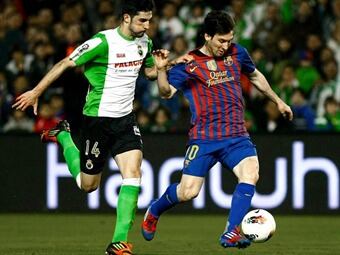 El Barcelona se impuso al Racing con mucha claridad y dos goles de Messi en un partido en el que, sin emplearse a fondo, jugó a placer ante un rival que no realizó un sólo disparo a puerta y que llegó al área de Víctor Valdés por primera vez mediada la segunda parte. El nuevo técnico del Racing, Álvaro Cervera, debutó como técnico de Primera División presentando una alineación inicial que poco se parecía a las que venía empleando Juanjo González. Aunque, en su presentación, dijo que no iba hacer cambios, finalmente dejó en el banquillo a Marc Torrejón, Adrián González y el uruguayo Christian Stuani, devolvió a Álvaro al centro de la zaga, apostó por un trivote y situó al senegalés Babacar en punta en detrimento de Stuani. Por su parte, Pep Guardiola, ante la baja por sanción de Piqué y una vez que Puyol recibió el alta médica a tiempo para jugar, apostó por un 3-4-3, con Pedro, Messi y Cuenca como hombres más adelantados. Con el Barcelona dominando desde el pitazo inicial, el primer aviso para el Racing llegó en una jugada con pase final a Pedro, que desde el vértice del área disparó flojo, pero con mucha rosca, un balón que salió rozando el poste. El Racing no arriesgaba nada y esperaba replegado, ordenado y sin perder el sitio, a un Barcelona que tocaba sin prisas creando más peligro por su banda izquierda, donde Francis, con el apoyo de Álvaro, se las tenía que ver con la velocidad de Pedro. El segundo aviso de los azulgranas llegó en una falta, perpendicular al área, que sacó Messi, para que Mario Fernández despejara un balón que iba a entrar ajustado al larguero. Y, poco después, un toque sutil de Iniesta fue a dar en el larguero, al coger adelantado al joven portero cántabro, sustituto del sancionado Toño. En cuanto el Barcelona apretaba el acelerador en sus combinaciones, el Racing llegaba tarde. Así, Messi se fue de dos jugadores para acabar tocando hacia Cesc Fábregas, que regateó a su marcador en la frontal del área, pero su disparo fue desviado por Mario Fernández. Apenas unos minutos después, una jugada similar dejó a Cesc en la misma situación, pero esta vez optó por dar un pase horizontal, que remató Messi al fondo de las mallas. La primera parte del monólogo del Barcelona concluyó sin que el Racing hiciera un solo disparo a puerta, lo que no fue de extrañar ya que el conjunto cántabro tampoco fue capaz de llegar a las inmediaciones del área de Valdes. El segundo gol del Barcelona llegó como consecuencia de un penalti por derribo de Cisma a Cesc, que pitó el colegiado a instancias de su asistente. La pena máxima la ejecutó Messi, engañando a Mario Fernández. -Ficha técnica: 0-Racing de Santander: Mario Fernández; Francis, Álvaro, Bernardo, Cisma; Colsa (Adrián, min 62), Gullón; Arana, Diop, Munitis (Jairo, min 70); y Babacar (Stuani, min 46). 2-FC Barcelona: Valdés; Alves, Mascherano, Puyol; Busquets, Xavi (Keita, min 83), Iniesta, Cesc Fabregas; Cuenca (Tello, min 73), Messi y Pedro (Adriano, min 87). Goles: 0-1, min 29. Messi. 0-2, min 56. Messi, de penalti.