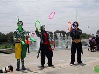 Entre las atracciones que se pueden ver en Ciudad Teatro, esta Cosmosfera, un montaje de danza y actuación dirigido por el español Eduard Canal y cuyo elenco es enteramente colombiano