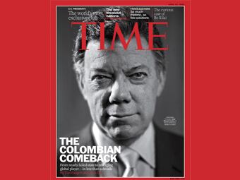“El Regreso de Colombia" será el artículo de portada en la próxima edición internacional de la revista Time, con una foto de primer plano del presidente Juan Manuel Santos. Colombia pasó “De ser casi un Estado fallido a jugador global emergente, en sólo una década” dice el sumario de portada de la revista Time, en la que se destaca que Santos es uno de los líderes suramericanos para tener entre ojos. Al interior de la edición internacional de la revista Time, que circula en Europa, Asia, África y América Latina, los periodistas John Otis y Tim Padgett narran el momento en que Santos espera la liberación de los 10 soldados que estuvieron por más de una década en manos de las Farc. Aunque el artículo reconoce avances durante el gobierno de Uribe en seguridad, y en medidas más progresistas con Santos, pero recalca que aún falta mucho para que Colombia pueda superar su conflicto interno y ser un país en paz.