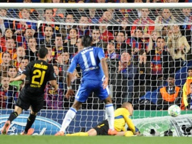 La afición del Barcelona regresó al estadio londinense de Stamford Bridge, lugar donde hace tres años Andrés Iniesta, con su tanto en el tiempo de descuento, clasificó al equipo "blaugrana" para la final de la Liga de Campeones, lo que supuso el primer paso para el mítico triplete