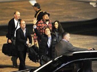 Con música, pancartas, fotografías y discos, los fanáticos del exbeatle Paul McCartney le dieron la bienvenida a su ídolo
