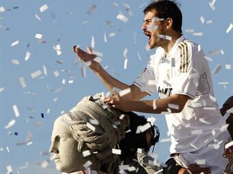 El momento más importante de la celebración fue cuando Casillas, ató al cuello de la Diosa Cibeles una bufanda del Real Madrid.