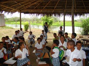 En el corregimiento de Cecilia la situación es igual o peor, los niños asisten a clases en aulas improvisadas en las calles del pueblo