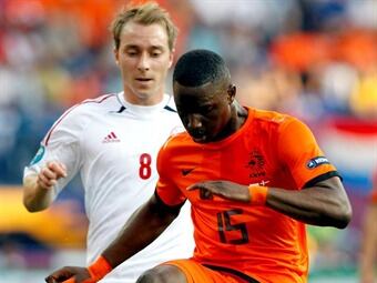 Jetro Willems, lateral izquierdo de la selección de Holanda en el partido contra Dinamarca en el Metalist Stadium de Kharkiv (Ucrania), se ha convertido en el jugador más joven de la historia de la Eurocopa