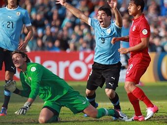 La selección de Uruguay sufrió más de lo esperado para superar por 4-2 a una diezmada representación de Perú que se convirtió en tremendo rival y con su victoria alcanzó el segundo lugar en la clasificación de las eliminatorias suramericanas del Mundial Brasil 2014. Uruguay salió decidido a modificar la imagen y el juego que mostró hace una semana cuando empató en casa 1-1 frente a Venezuela, lo que significó una decepción para la plantilla y los aficionados. Ya a los tres minutos Suárez, que con su movilidad fue una verdadera pesadilla para la defensa peruana toda la tarde, recogió un balón al borde del área y su remate fue salvado por Álvarez cuando llevaba destino de gol. Respondió Perú y Fernández, pese a tener poco ángulo para el remate final, obligó a una arriesgada atajada de Muslera tras una excelente jugada colectiva. Los Celestes se plantaron en el campo rival y comenzaron a llevar peligro casi de manera constante hacia la portería peruana. Penny le ganó un mano a mano a Suárez y a los 13 minutos fue Cavani quien quedó de cara a la valla rival y elevó su remate. El gol no podía demorar y llegó en la jugada siguiente, en la que el defensa debutante Sebastián Coates cabeceó tras un saque de esquina y su remate pasó la raya de gol, aunque el balón fue posteriormente restado por la defensa. La Conmebol le acredita este gol a Luis Suárez. A pesar de estar en desventaja, la visita mantuvo su esquema de súper población en el centro del campo a la espera de algún contragolpe. Uruguay mantuvo el ritmo en la búsqueda del segundo gol, que llegó a los 39 minutos por intermedio de Maximiliano Pereira, que recogió un rebote en la defensa rival tras remate de Suárez. Con dos goles de ventaja y dominio del trámite los Celestes tenían todo para seguir de largo, pero "la máquina se paró". Bajó la presión uruguaya, Perú comenzó a crecer, primero tímidamente pero luego adelantó sus líneas. A cinco minutos para terminar la primera parte llegó el descuento peruano, cuando el defensa uruguayo Diego Godín, asediado por Fernández, venció de cabeza su propia meta. Si el primer tiempo terminó con preocupación para los casi 60.000 uruguayos que colmaron el estadio, el inicio del segundo los sumergió en la angustia. La estrella peruana Paolo Guerrero recibió un balón elevado, hubo un despiste en la defensa Celeste que le dejó acomodar y su remate fue gol y balde de agua helada para el local. A partir de allí, el partido ganó en intensidad, emoción y pierna dura. Alentado por su público, Uruguay fue a buscar el desnivel, pero Perú llevó peligro de contragolpe. Cavani ensayó una de sus habituales cabalgatas por la derecha y fue derribado dentro del área, Diego Forlán, máximo goleador histórico de la Celeste remató potente pero el meta peruano adivinó y mandó el balón al saque de esquina. Cuando los nervios empezaban a pesar en el Centenario y la gente se miraba sin entender lo que pasaba, Cristian Rodríguez, que ingresó al campo dos minutos antes y también con golpe de cabeza volvió a poner arriba a Uruguay. El final fue a puro nervio y emoción y ambos estuvieron cerca de marcar en más de una ocasión. Las más claras fueron un cabezazo de Ramírez que Muslera paró firme y para Uruguay un tiro cruzado de Suárez que el portero peruano sacó con el pie derecho. Cuando se jugaba tiempo de reposición, con Perú volcado por el empate y ambos equipos extenuados, llegó el cuarto gol uruguayo tras un contragolpe y por parte de Eguren, que también ingresó poco antes