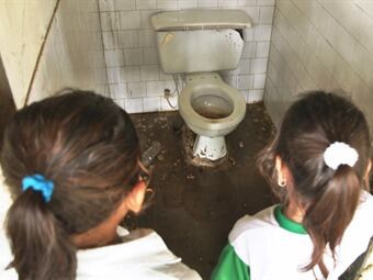 Y si en las aulas la situación es crítica, en los baños más aún, porque la falta de agua y por consiguiente el desaseo que ello genera dio lugar a la aparición de gusanos, obligando a los niños a utilizar lotes enmontados para hacer sus necesidades fisiológicas