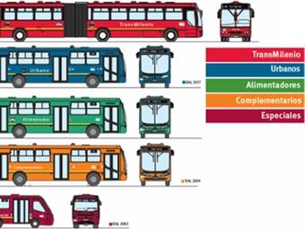 El Sistema Integrado de Transporte Público tendrá cinco clases de buses diferentes. Estas son:Troncal• Se identifica con el color rojo. • Sirve para movilizarse por las troncales de la ciudad y permite la conexión entre las estaciones y portales del Sistema TransMilenio. • Es un servicio que se paga con tarjeta, en las estaciones y portales. Urbano• Se identifica con el color azul