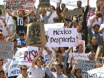 Decenas de miles de jóvenes del movimiento Yo soy 132 marchan hoy en la capital mexicana para protestar por lo que consideran un "gran número de anomalías, delitos electorales y hechos violentos" registrados en los comicios del domingo. El colectivo inició su marcha a las 14.00 hora local (19.00 GMT) desde la estructura conocida como Estela de la Luz de la capital mexicana hacia el Monumento a la Revolución. En la marcha, que se desarrolla de manera ordenada y pacífica, participan decenas de miles de jóvenes que corean lemas como "Fuera Peña", en referencia al virtual ganador de las elecciones presidenciales de la víspera, Enrique Peña Nieto, del Partido Revolucionario Institucional (PRI). También portaban mantas con leyendas como "IFE, ¿quién te enseñó a contar, Elba Esther Gordillo?", aludiendo a la autoridad electoral mexicana, el Instituto Federal Electoral, y a la desprestigiada líder del sindicato nacional de maestros. "Prefiero morir de pie que vivir arrodillado ante Peña Nieto" y "Se ve, se siente, Enrique es delincuente", eran otras de las leyendas. Enrique Pérez Polanco, integrante del movimiento y participante de la marcha, dijo que el colectivo deberá ahora determinar qué acción tomar, entre las que se consideran exigir la cancelación de los comicios o una segunda vuelta electoral. Al señalársele que la segunda vuelta no está prevista en las leyes mexicanas, Pérez, quien se identificó como productor de teatro de la ciudad de Mérida (sureste), argumentó que "si se trata de tener gobernabilidad y paz social, podría ser una opción". "No olvidemos que sólo votó el 60 % de la población, y de esa proporción sólo 38 % eligió, entre comillas, a Peña. Eso significa que menos del 30 % eligió a quien va a gobernar al 100 %. En países democráticamente más avanzados tienen la segunda vuelta o el requisito de obtener más del 50 % de los votos para ganar", acotó. "Es muy curioso ver que las declaraciones oficiales hablan de una elección de la que no tuvimos referencia para nada, una elección transparente, tranquila, en paz, ordenada", dijo Antonio Attolini, uno de los portavoces del movimiento. En una entrevista radiofónica, el joven indicó que el movimiento registró decenas de irregularidades que van desde la instalación tardía de casillas hasta la quema de urnas. "Tenemos una jornada que presenta muchísimas irregularidades, faltas a la legalidad, conato de violencia", que son motivo de preocupación sobre la realidad que vive el país, señaló