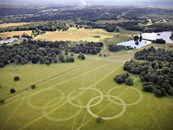 Unos aros Olímpicos de 300 metros marcados sobre la hierba de Richmond Park, al suroeste de Londres, dan la bienvenida a los viajeros que llegan en avión a la capital británica, donde darán comienzo los Juegos en 18 días