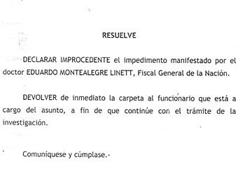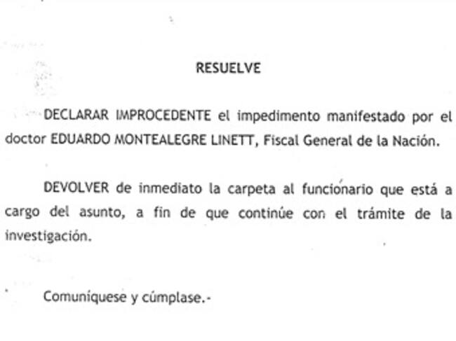 Los magistrados citan un párrafo del impedimento presentado por Montealegre en el que señala que "en la actualidad el titular de este despacho no adelanta ni adelantará directametne investigación alguna"
