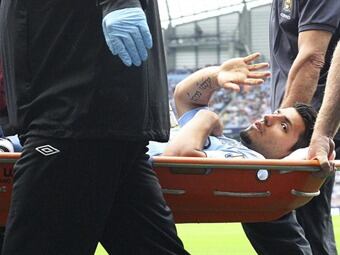 El entrenador del Manchester City, Roberto Mancini, reconoció estar "preocupado" por la lesión en la rodilla derecha sufrida por el delantero argentino Sergio "Kun" Agüero, porque la zona es "peligrosa"