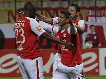 Santa Fe, actual campéon del fútbol colombiano, consiguió los tres puntos en Bogotá tras vencer 2-1 a un difícil Patriotas que le puso resistencia en El Campín
