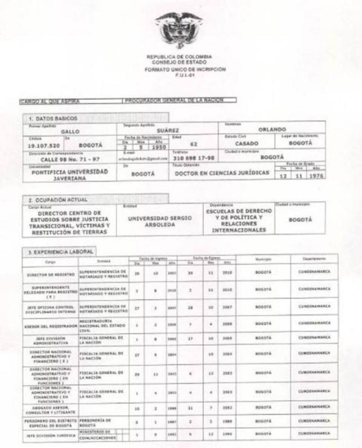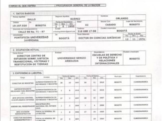 La hoja de vida de Orlando Gallo Suárez, candidato por el Consejo de Estado para procurador general