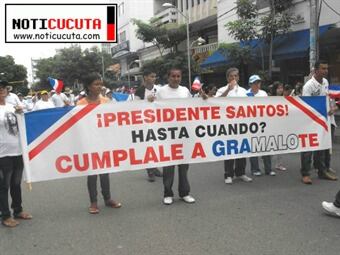 Los manifestantes que recorren las principales calles de Cúcuta para llegar al Palacio Municipal, también le exigen al mandatario que se entreguen los recursos del Gobierno Nacional para cancelar los arrendamientos en donde se encuentran albergados