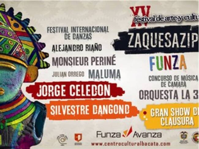 Además de dos grandes eventos gratuitos para un público aproximado de 15 mil personas cada uno, ellos son: El Concierto sin fronteras que se realizará de manera compartida con el Municipio de Mosquera, el sábado 29 de septiembre, los artistas invitados son: Maluma, Monsieur Perinne y Jorge Celedón, quienes serán el atractivo para un público de 15 mil personas aproximadamente. Y el Concierto Funza Avanza con la Orquesta La 33 y Silvestre Dangond, el viernes 5 de octubre. ¿Por qué se llama Zaquesazipa? El término Zaquesazipa corresponde al nombre del último Zipa Muisca, su apellido figura en algunas crónicas como Sagipa o Sacresasigúa, este personaje fue un teniente militar de Tisquezusa Zipa que le nombró sucesor en su lecho de muerte en Faca, se sabe por cronistas de la época que Sagipa fue un gran militar que defendió a su pueblo incluso con su vida al ser decapitado en Bojacá después de haber protegido a un buen número de Muiscas, el nombre se otorgó al Festival de Arte y Cultura como un homenaje a esa cultura indígena ancestral que dominara toda el érea del altiplano cundiboyacense