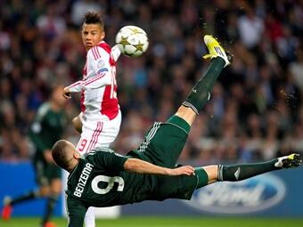 Kaká estaba empeñado en firmar una gran noche. Mourinho recurría a Di María porque el partido comenzaba a romperse y los espacios aparecían. Es el escenario perfecto para Cristiano. Benzema y Di María seguían haciendo trabajar al portero del Ajax, que nada pudo hacer ante el disparo ajustado al palo de Ronaldo desde treinta metros. Y menos aún ante el mano a mano, tras pase de Khedira, en el que el portugués picó el esférico a la salida de Vermeer para llevarse un nuevo balón a casa con otro ''hat-trick''