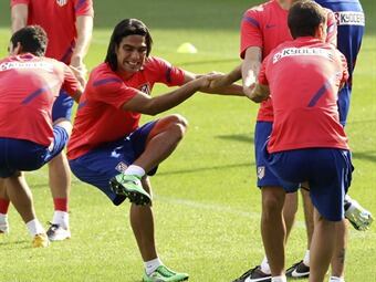 El argentino Diego Pablo Simeone, entrenador del Atlético de Madrid, confirmó que el colombiano Radamel Falcao, quien vuelve a la convocatoria tras superar una sobrecarga en el aductor del muslo derecho, "seguramente iniciará" el partido de este domingo ante el Málaga en el Vicente Calderón. "Falcao está bien. En principio viene con nosotros, trabajó a la par del grupo, así que seguramente iniciará y luego iremos viendo en el recorrido del partido cómo se siente", explicó el técnico en rueda de prensa tras el entrenamiento a puerta cerrada, en el que el atacante trabajó con normalidad por segundo día consecutivo. El ariete, máximo goleador de la Liga, con siete goles, y que se ha perdido los dos últimos encuentros de su equipo, en la anterior jornada del campeonato ante el Espanyol y el pasado jueves en la Liga Europa contra el Viktoria Plzen, vuelve a una convocatoria que está compuesta por diecinueve jugadores, incluido Tiago Mendes. El volante portugués, que entrenó al margen del grupo por un golpe en el tobillo, entró en la convocatoria, aunque es duda para el choque en el Vicente Calderón, en el que no estarán Kader Oueslati, Jorge Pulido, Joel Robles y Silvio Azevedo, los cuatro descartes de la lista por decisión técnica. Los porteros Thibaut Courtois y Sergio Asenjo; los defensas Juanfran Torres, Joao Miranda, Daniel ''Cata'' Díaz, Diego Godín, Filipe Luis y Domingo Cisma; los volantes Mario Suárez, Gabi Fernández, Emre Belozoglu, Raúl García, Cristian Rodríguez, Arda Turan y Koke Resurrección; y los delanteros Adrián López y Diego Costa completan la convocatoria para el duelo
