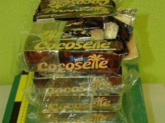 Esta persona portaba una gran cantidad de galletas y golosinas en una de sus maletas y cuando los agentes las inspeccionaron, comprobaron que el relleno de coco de varios paquetes de galletas era en realidad de cocaína