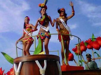 El ambiente está bastante animado en algunos sitios, en especial en el que se encuentran las candidatas al Reinado de la Independencia.