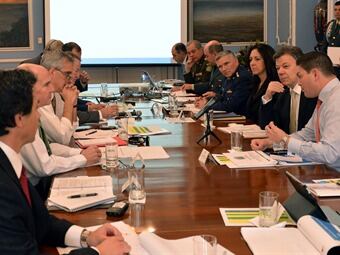 Entre la agenda está la compra de armamento, helicópteros y aviones no tripulados, para vigilar en territorio nacional, además de la lucha antidrogas. El presidente Juan Manuel Santos entró a la reunión acompañado por sus ministros de Defensa y Justicia y varios miembros de las Fuerzas Armadas