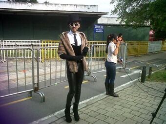 Vistiendo las pintas que tradicionalmente se han conocido de la Reina del pop en los diversos escenarios del mundo, los jóvenes llevan prendas de diversa índole en el cuerpo, como gorras, camisetas, manillas, collares con crucifijos, sombreros, cintas, y muchas arandelas, para gozarse la fiesta musical más importante del año en el país, y quizá la más grande que se haya hecho en esta ciudad.-La fila es encabezada por Andrea Rivera, una muchacha que llegó de la ciudad de Cali, llevaba esta madrugada atuendos de la cantante, y se declaró muy emocionada por la presencia de la cantante mundial en Medellín, y la posibilidad de verla esta noche, para lo cual consiguió su boleta desde cuando las empezaron a vender
