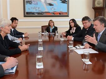 Tras su encuentro con el presidente Juan Manuel Santos, Lagarde indicó que es "un honor" compartir ideas sobre la economía internacional "que no es tan sólida como la colombiana"