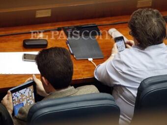 Uno de los parlamentarios jugaba en una tableta y su contrincante le contestaba desde el teléfono celular. Al final pidieron disculpas y admitieron que su comportamiento no tenía justificación