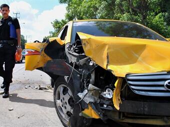 El hecho se registró cuando un vehículo de servicio público, taxi, se volcó luego de estrellarse con otro automotor