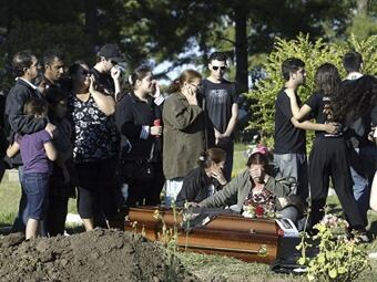 En medio de un ambiente de conmoción, en la ciudad brasileña de Santa María comenzaron a recibir sepultura hoy las víctimas del incendio de la discoteca Kiss, que en la madrugada del domingo causó 231 muertos y al menos 112 heridos. En el Cementerio Ecuménico Municipal y al Parque Jardín Santa Rita se congregaron esta mañana los familiares, amigos y compañeros de estudio de los jóvenes fallecidos. Una de las primeras víctimas a la que se dio sepultura fue Tanise Lopes Cielo, en cuyo féretro se había colocado un ramo de flores y una fotografía de la joven. Dos mujeres permanecieron hasta el último instante llorando abrazadas al féretro de Tanise, en medio del silencio de los presentes. Muchos de los fallecidos son estudiantes de distintas facultades de la Universidad Federal de Santa María (UFSM), que celebraban una fiesta de integración en la discoteca siniestrada. La UFSM es una de las ocho universidades de esta ciudad de 261.000 habitantes, de los cuales más del diez por ciento son estudiantes de educación superior. Al Cementerio Ecuménico Municipal, donde según informaciones de las autoridades serán inhumados 34 cadáveres, comenzaron a llegar féretros pasadas las 09.00 hora local (11.00 GMT). Grupos de personas, muchos de ellos jóvenes universitarios como la mayoría de las víctimas, acompañaban a los ataúdes en su llegada al camposanto. Entre los fallecidos hay ocho militares, al parecer pertenecientes a la base que la Fuerza Aérea tiene en Santa María. En la puerta del cementerio la madre de uno de los fallecidos pidió a los cámaras de televisión que se abstuviesen de grabar las dolorosas escenas, y poco después el pariente de otra víctima increpó y empujó a uno de ellos que seguía tomando imágenes. La mayoría de los muertos serán sepultados en Santa María pero también en otras ciudades vecinas de donde eran oriundos algunos de los jóvenes. La alcaldía de Santa María se hará cargo del traslado de quienes no tengan recursos para llevar a sus seres queridos fallecidos hasta su lugar de origen.
