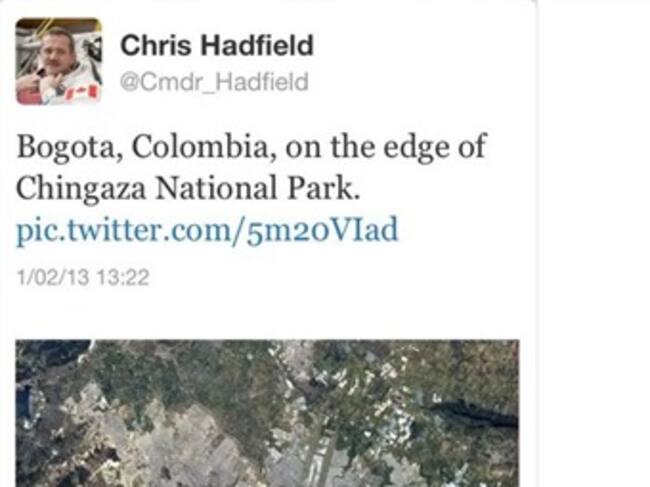 Chris Hadfield actualmente vive en el espacio a bordo de la estación espacial ISS como ingeniero de vuelo en la Expedición 34, es el primer canadiense en caminar en el espacio; desde que inició su aventura Hadfield ha ganado más de 290.000 seguidores hasta el momento debido a sus fotografías que van desde Gibraltar hasta Bogotá (Parque Nacional Chingaza)