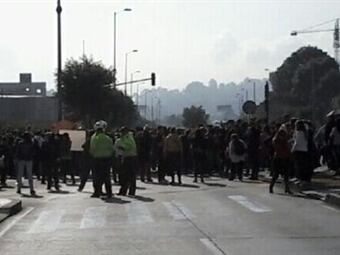 Cientos de padres de familia bloquean salida de buses de Transmilenio del Portal de Suba